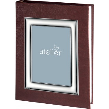 Atelier Argenti album con portafoto in copertina in lamina d'argento e in pelle marrone chiaro, modello Batista