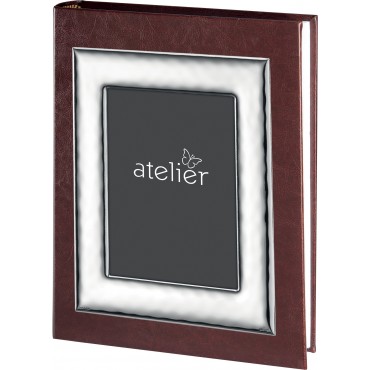 Atelier Argenti album con portafoto in copertina in lamina d'argento e in pelle scura, modello Caban.