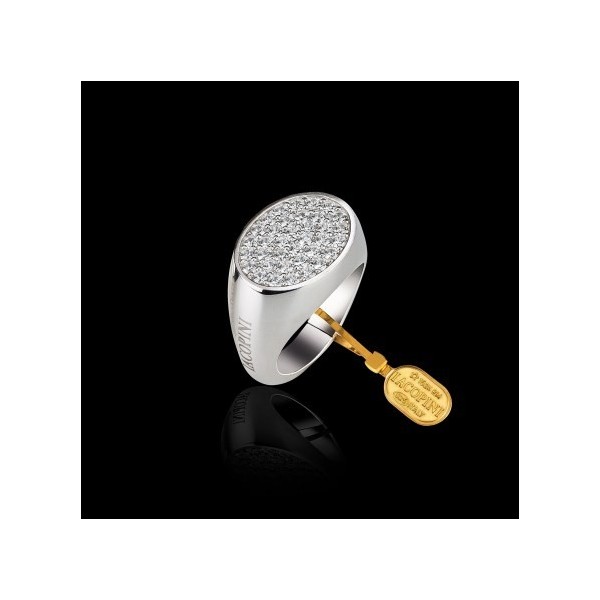 Iacopini anello donna a sigillo di forma ovale in argento 925% ricco di pietre swarovski originali, misura 8. Possibilità di messa a misura su richiesta.