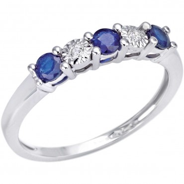 Bliss veretta in oro bianco rodiato 18 kt costituito da due diamanti da 0.03 kt totali e tre zaffiri da 0.45 kt totali. Disponibile nella misura 14 con possibilità di portarla a misura desiderata.