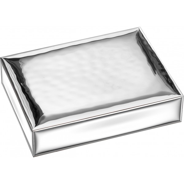 Atelier Argenti cofanetto o scatola porta gioie modello Caban in lastra d'argento, leggermente martellato, adatto su qualunque stile d'arredo. Sopra l'argento vi è una patina protettiva trasparente che lo preserva dallo scurimento nel tempo. Per questo non vanno in alcun modo spruzzati prodotti per l'argento o qualsiasi altro agente chimico, ma all'occorrenza, va utilizzato un panno morbido e asciutto per togliere la polvere. Il cofanetto resta invariato nel tempo, pulito e lucente come appena acquistato. E' un ottima idea regalo per qualunque occasione, arreda la casa o l'ufficio con eleganza e stile.