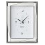 Atelier orologio sveglia da tavolo lucido e satinato in lamina d'argento e retro in legno scuro elegante e raffinato adatta a qualunque tipologia di arredo, modello Entrè.