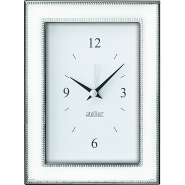 Atelier cornice portafoto liscia con un intarsio sul perimetro esterno ed interno in lamina d'argento e retro in legno scuro elegante e raffinata adatta a qualunque tipologia di arredo, modello Luxury. Sul retro si imposta sia l'orario che la sveglia. Sopra l'argento vi è una patina protettiva trasparente che lo preserva dallo scurimento nel tempo. Per questo non vanno in alcun modo spruzzati prodotti per l'argento o qualsiasi altro agente chimico, ma all'occorrenza, va utilizzato un panno morbido e asciutto per togliere la polvere. Il portafoto resta invariato nel tempo, pulito e lucente come appena acquistato. E' un ottima idea regalo per qualunque occasione, arreda la casa o l'ufficio con eleganza e stile.