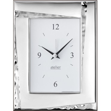 Atelier orologio sveglia da tavolo in lamina d'argento e retro in legno scuro elegante e raffinato adatta a qualunque tipologia di arredo. Sul retro si imposta sia l'orario che la sveglia. Sopra l'argento vi è una patina protettiva trasparente che lo preserva dallo scurimento nel tempo. Per questo non vanno in alcun modo spruzzati prodotti per l'argento o qualsiasi altro agente chimico, ma all'occorrenza, va utilizzato un panno morbido e asciutto per togliere la polvere. L'orologio resta invariato nel tempo, pulito e lucente come appena acquistato. E' un ottima idea regalo per qualunque occasione, arreda la casa o l'ufficio con eleganza e stile.