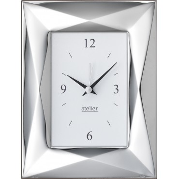 Atelier orologio sveglia da tavolo in lamina d'argento e retro in legno scuro elegante e raffinato adatta a qualunque tipologia di arredo.