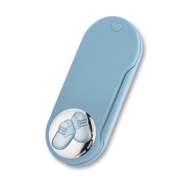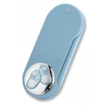 Atelier Argenti set pappa con scarpette in argento e plex da bimbo. Il set all'interno dell'astuccio comprende le 2 posatine, cucchiaio e forchetta. Questo set pappa pratico e funzionale permette alla mamma di portarlo con sè fuori casa mantenendo le posatine pulite prima e dopo l'utilizzo. Il set pappa è un'ottima idea regalo per nascita o da regalare in vista del periodo dello svezzamento (di norma intorno ai 6 mesi di età).