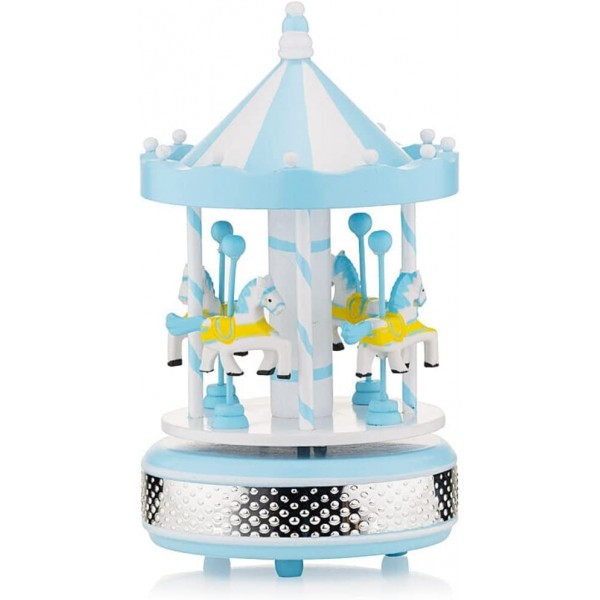 Valenti & Co. carillon a forma di giostra con cavalli in argento e legno da bimbo, con carica manuale per ascoltare la tenera ninna nanna.