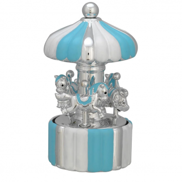 Bagutta carillon a forma di giostra con cavalli in argento e ceramica smaltata da bimbo, con carica manuale per ascoltare la tenera ninna nanna. Questo carillon è originale ed è un ottima idea regalo per la nascita, Battesimo e compleanno per abbellire la stanza del bimbo, per farlo addormentare oppure per rilassare la mamma durante l allattamento.