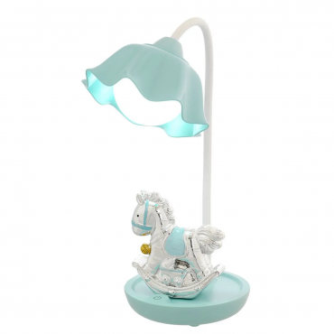 Bagutta lampada led con cavallo a dondolo in argento e plex da bimbo, collo mobile con accensione touch sulla base con 3 intensità di luce. Si ricarica a corrente tramite filo in dotazione all'interno della confezione.