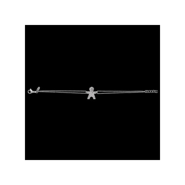 Iacopini bracciale da donna in argento 925% con doppia maglia con al centro un bebè maschio con pavè di swarovski originali certificati. Chiusura con moschettone in argento 925% regolabile tramite anellini.