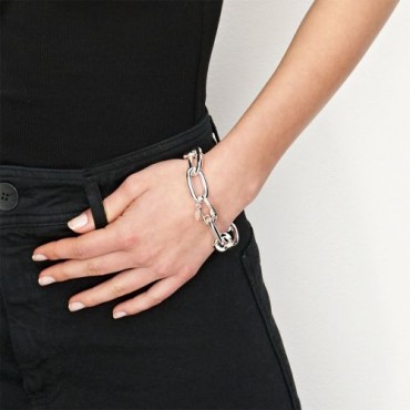 UnoAerre bracciale da donna a catena in bronzo bianco. Lunghezza di 21,50 cm. Chiusura regolabile con moschettone.