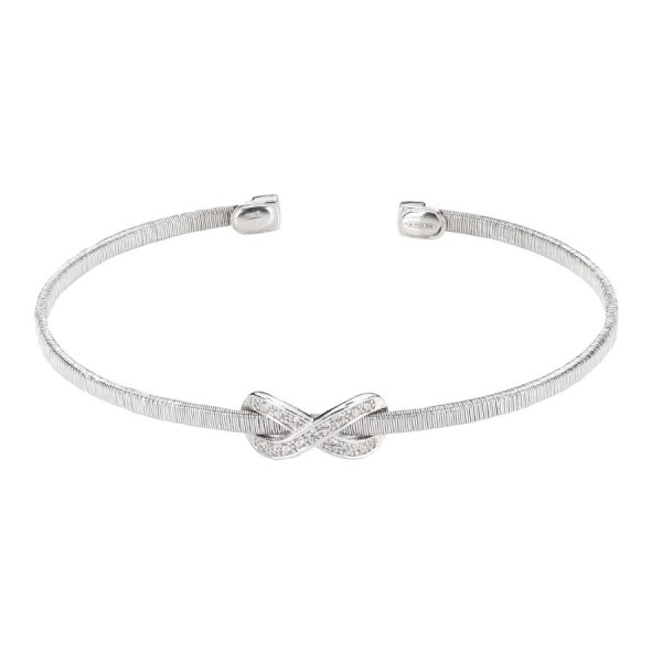 Iacopini bracciale da donna, rigido e aperto sotto con swarovski originali certificati al centro a forma di infinito, in argento 925%.