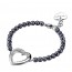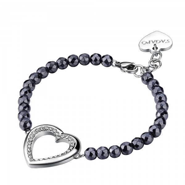 S'Agapo bracciale da donna in acciaio 316L inossidabile e anallergico a sfere con ematite nera con cuore centrale vuoto con cristalli bianchi. Chiusura regolabile con moschettone.