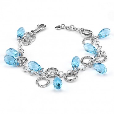 Iacopini bracciale donna in argento 925% con pietre Swarovski di colore celeste a goccia. Chiusura regolabile con moschettone