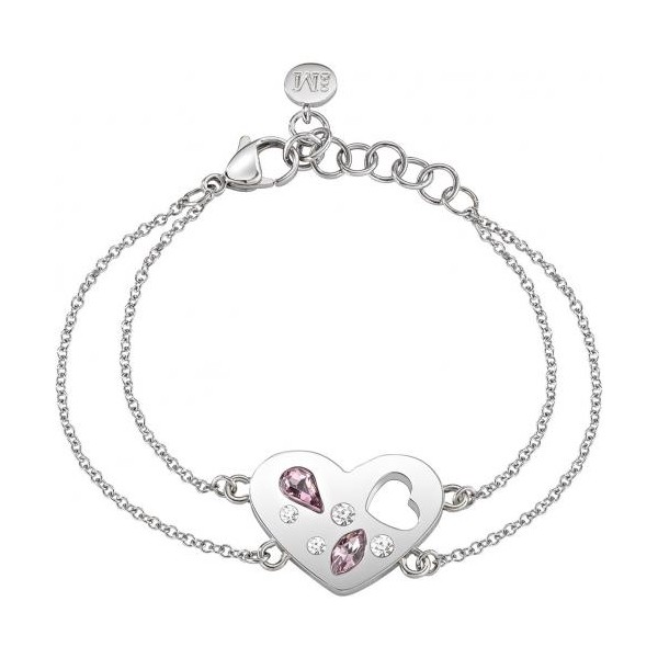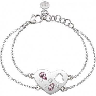 Questo bracciale firmato Morellato fa parte della collezione Allegra in acciaio da donna, a doppia maglia che tiene al centro un cuore pieno con all'interno cristalli rosa. Maglia a catenella con chiusura con moschettone, facilmente regolabile a seconda del polso tramite sequenza di anellini a cui agganciare la chiusura.