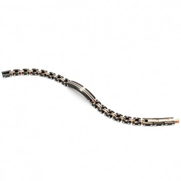 Questo bracciale da uomo della collezione Cesare Paciotti 4US è realizzato in acciaio inossidabile e anallergico con maglia in acciaio nero e color oro rosa e targhetta centrale. Chiusura regolabile, da 22 a 18 cm