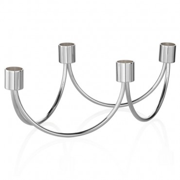 Ottaviani candelabro a quattro fiamme in metallo argentato, lineare e moderno. Dimensioni 26.4 cm x 15.2 cm altezza 9.8 cm