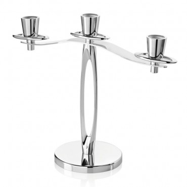 Ottaviani candelabro a 3 fiamme in metallo argentato, lineare e moderno. Dimensioni 34 cm x 12 cm altezza 26 cm