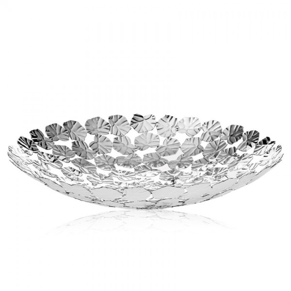 Centrotavola firmato Ottaviani modello "foglie delle fate" in metallo argentato. Diametro 43 cm h. 8 cm