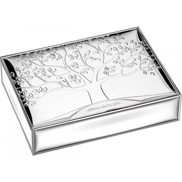 Atelier Argenti cofanetto o scatola porta gioie in lastra d'argento con inciso l'albero della vita, adatto su qualunque stile d'arredo. Sopra l'argento vi è una patina protettiva trasparente che lo preserva dallo scurimento nel tempo. Per questo non vanno in alcun modo spruzzati prodotti per l'argento o qualsiasi altro agente chimico, ma all'occorrenza, va utilizzato un panno morbido e asciutto per togliere la polvere. Il cofanetto resta invariato nel tempo, pulito e lucente come appena acquistato. E' un ottima idea regalo per qualunque occasione, arreda la casa o l'ufficio con eleganza e stile.