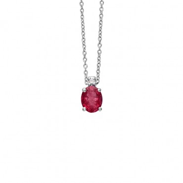 Bliss collana veneziana da donna con pendente un diamante da 0.01 kt di colore G purezza VS poggiato su un rubino da 0.50 kt. Montatura in oro bianco 18 kt e chiusura con moschettone