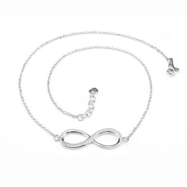 Iacopini collana da donna in argento 925% con il simbolo dell'infinito centrale lungo la maglia con swarovsky originali incastonati. Chiusura con moschettone in argento 925% regolabile tramite anellini.