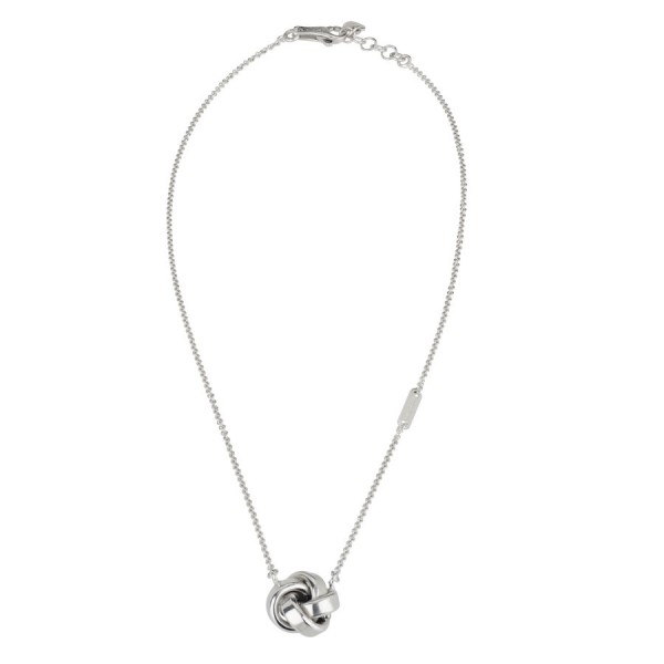 Iacopini collana da donna in argento 925% con pendente una sorta di intreccio, come un gomitolo, centrale lungo la maglia. Chiusura con moschettone in argento 925% regolabile tramite anellini.