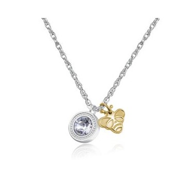 S''Agapo collana da donna della linea Lucky Light in acciaio 316L inossidabile e anallergico con pendente un cristallo Swarovsky e ciondolo a forma di ape in acciaio color oro. Chiusura regolabile con moschettone.