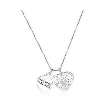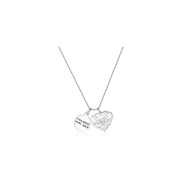 S''Agapo collana da donna della linea You in acciaio 316L inossidabile e anallergico con pendente a forma di cuore con cristalli bianchi e una medaglietta con la scritta "Non sarai mai sola" . Chiusura regolabile con moschettone.