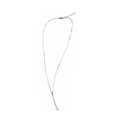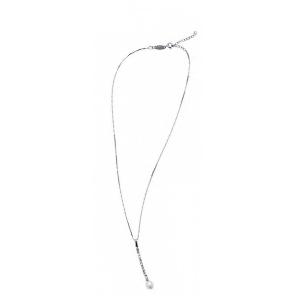 Ottaviani collana da donna in argento 925% doppio filo da cui pende una fila di zirconi incastonati che terminano con una perla bianca.