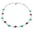 Iacopini collana da donna in argento 925% composta da doppia catena con pietre di colore verde e viola alternate di diametro 10 mm, lunga 40 cm. Chiusura regolabile in argento con moschettone.