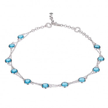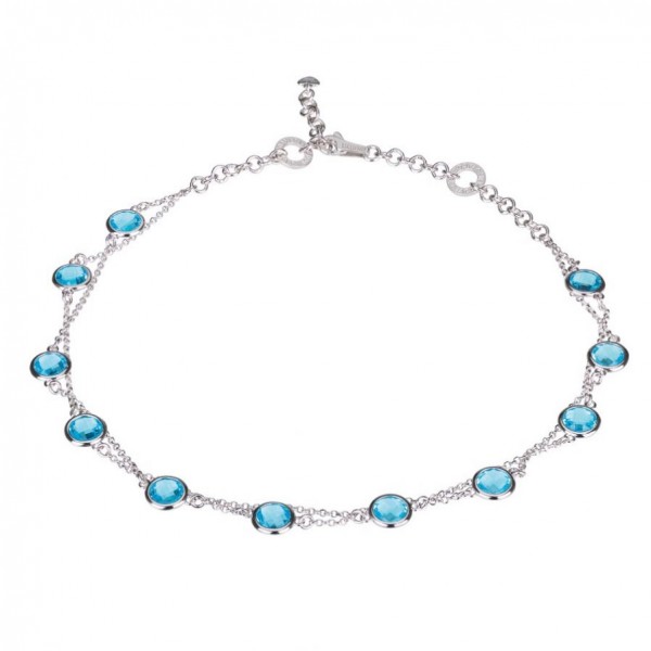 Iacopini collana da donna in argento 925% composta da doppia catena con pietre di colore celesti di diametro 10 mm, lunga 40 cm. Chiusura regolabile in argento con moschettone.
