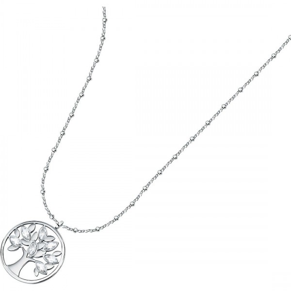 Morellato collana in acciaio della collezione Vita con pendente l'albero della vita, con cristalli sulle foglie. Lunghezza 80+5 cm