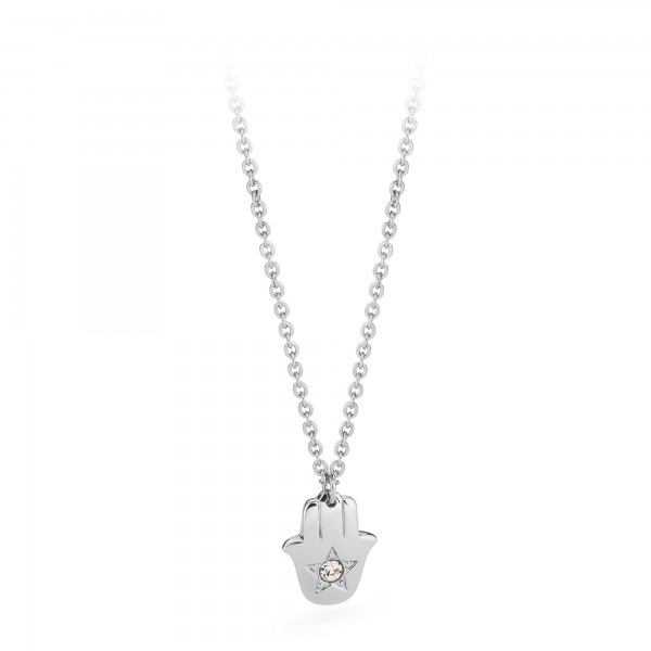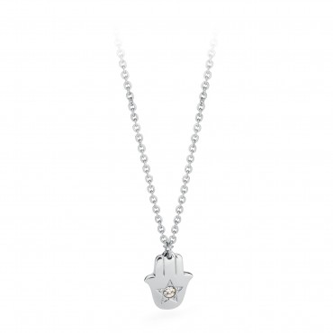 S'Agapo collana in acciaio con pendente a forma di mano di fatima con zircone bianco centrale