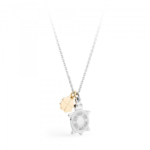 S'Agapo collana in acciaio con pendente a forma di tartaruga con quadrifoglio in acciaio dorato