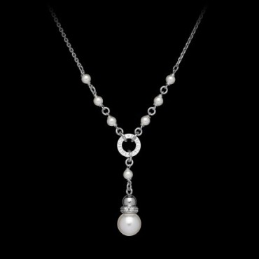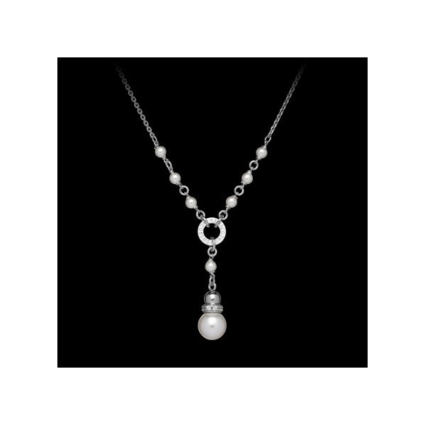 Iacopini collana da donna in argento 925% con perla pendente. Chiusura regolabile con moschettone
