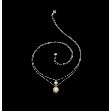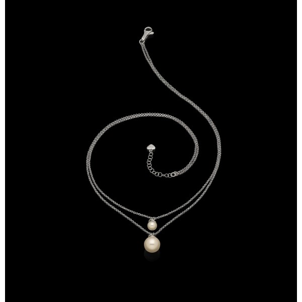 Iacopini collana da donna in argento 925% collier a doppio filo con pendente perle. Chiusura con moschettone in argento 925% regolabile tramite anellini.