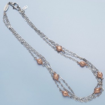 Ottaviani collana donna in argento 925% multifilo con sfere in argento rosa, lunghezza 45 cm