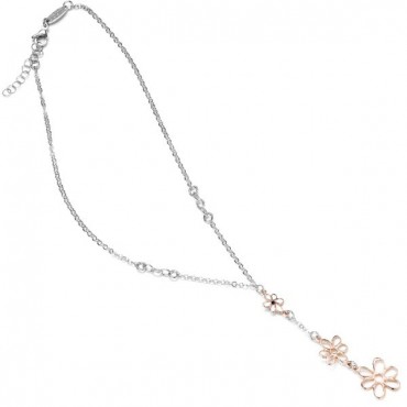 Ottaviani collana donna in argento 925% con pendenti fiori in argento rosa, lunghezza 43 cm