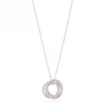 S'Agapo collana in acciaio con 3 pendenti a forma di cerchi ricchi di glitter colorati sulle tonalità del rosa