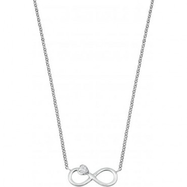 Morellato collana in acciaio della collezione Istanti con pendente a forma di infinito con all'interno cristalli a forma di cuore. La lunghezza della collana è di 45 cm ed è a catenella.
