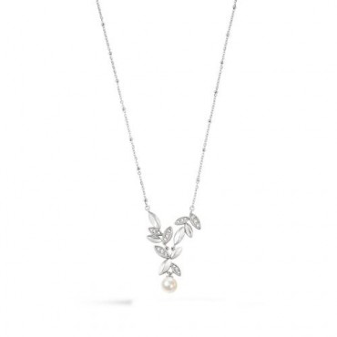 Collana da donna firmata Morellato della Collezione Gioia è composta da una catenina con un insieme di foglie da ambo le parti arricchite da zirconcini incastonati che confluisce in una perla coltivata finale dalla colorazione candida e luminosa. La chiusura con moschettone permette di essere regolata.