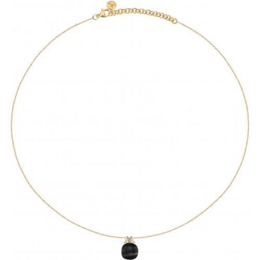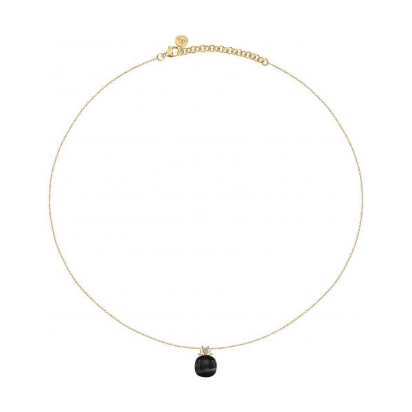 Morellato collana donna a girocollo in argento 925% dorato della collezione Gemma ha un pendente con una pietra Cat Eye di colore nero di forma arrotondata su cui poggiano tre petali in argento a formare tre cuori di cui il centrale è ricco di zirconcini bianchi che donano maggior brillantezza e fascino al gioiello, nonchè simbolo del prestigioso marchio Morellato. Chiusura regolabile con moschettone.