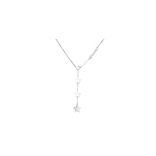 S'Agapo collana lunga da donna della linea Fancy in acciaio 316L inossidabile e anallergico con stelle e scritta "dreams" e cristalli bianchi. Chiusura regolabile con moschettone.