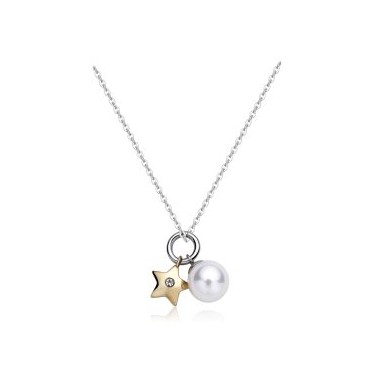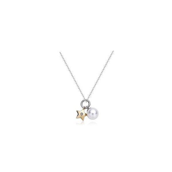S''Agapo collana da donna della linea Days in acciaio 316L inossidabile e anallergico con pendente a forma di stella in acciaio color oro e una perla bianca. Chiusura regolabile con moschettone.