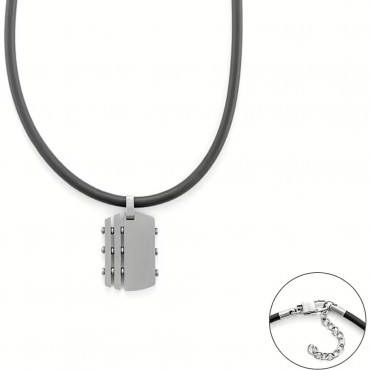 Questa collana con piastrina da uomo della collezione Cesare Paciotti 4US è stata realizzata in acciaio anallergico. La collana è lunga 50 cm in caucciu con chiusura regolabile.
