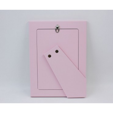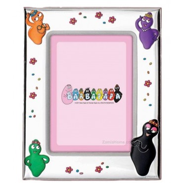 Atelier cornice portafoto da bambina a tema "Barba papà" con pupazzetti di tutti i colori in argento smaltato e retro in legno rosa.