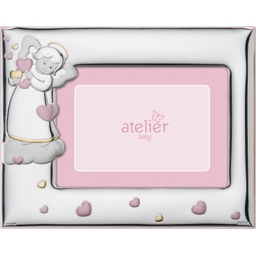 Atelier Argenti cornice portafoto da bambina in argento e retro in legno rosa con angelo.