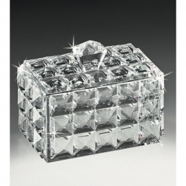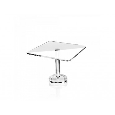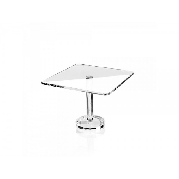 Ottaviani alzata in cristallo stile moderno con strass sul gambo, con base squadrata, misure 30 cm x 30 cm x 21 cm.