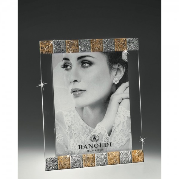 Ranoldi cornice portafoto misura interna 20 x 25 cm con bordo color argento alternato al color oro, orientamento solo verticale. Ottima idea regalo per casa nuova, per Matrimonio o Anniversario di Nozze.